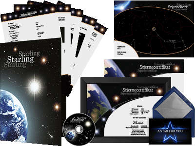 (inklusive gravering: dit stjernenavn og din stjernes navnedag og HIP-nummer)